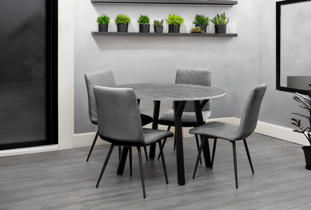 1.1m Concrete Round Table & 4 x CH66 Grey Chairs