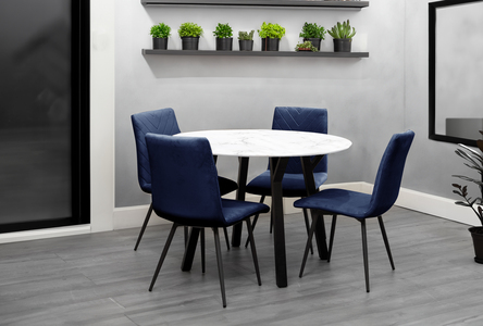 1.1m Marble Round Table & 4 x CH66 Blue Chairs