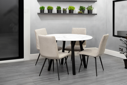 1.1m Marble Round Table & 4 x CH66 Taupe Chairs