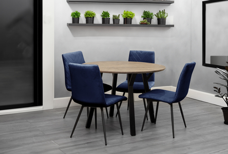 1.1m Oak Finish Round Table & 4 x CH66 Blue Chairs