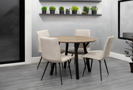 1.1m Oak Finish Round Table & 4 x CH66 Taupe Chairs
