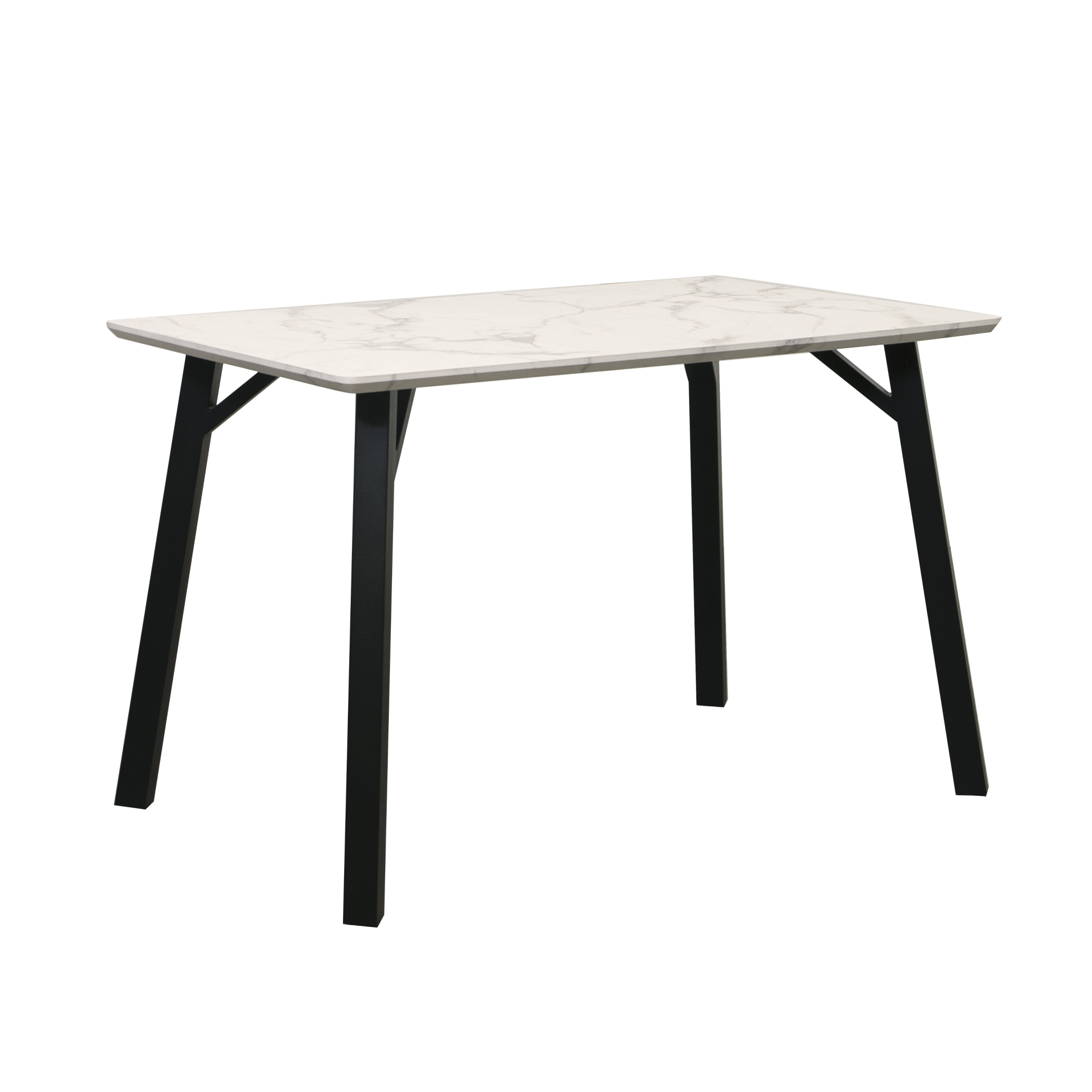 "Features • Sturdy Iron legs with Black Powder coating • Easy to follow assmbly guide • Can seat 4 Chairs • Sylish and on trend Marble Effect • Amazing value without comprimising on quality"
