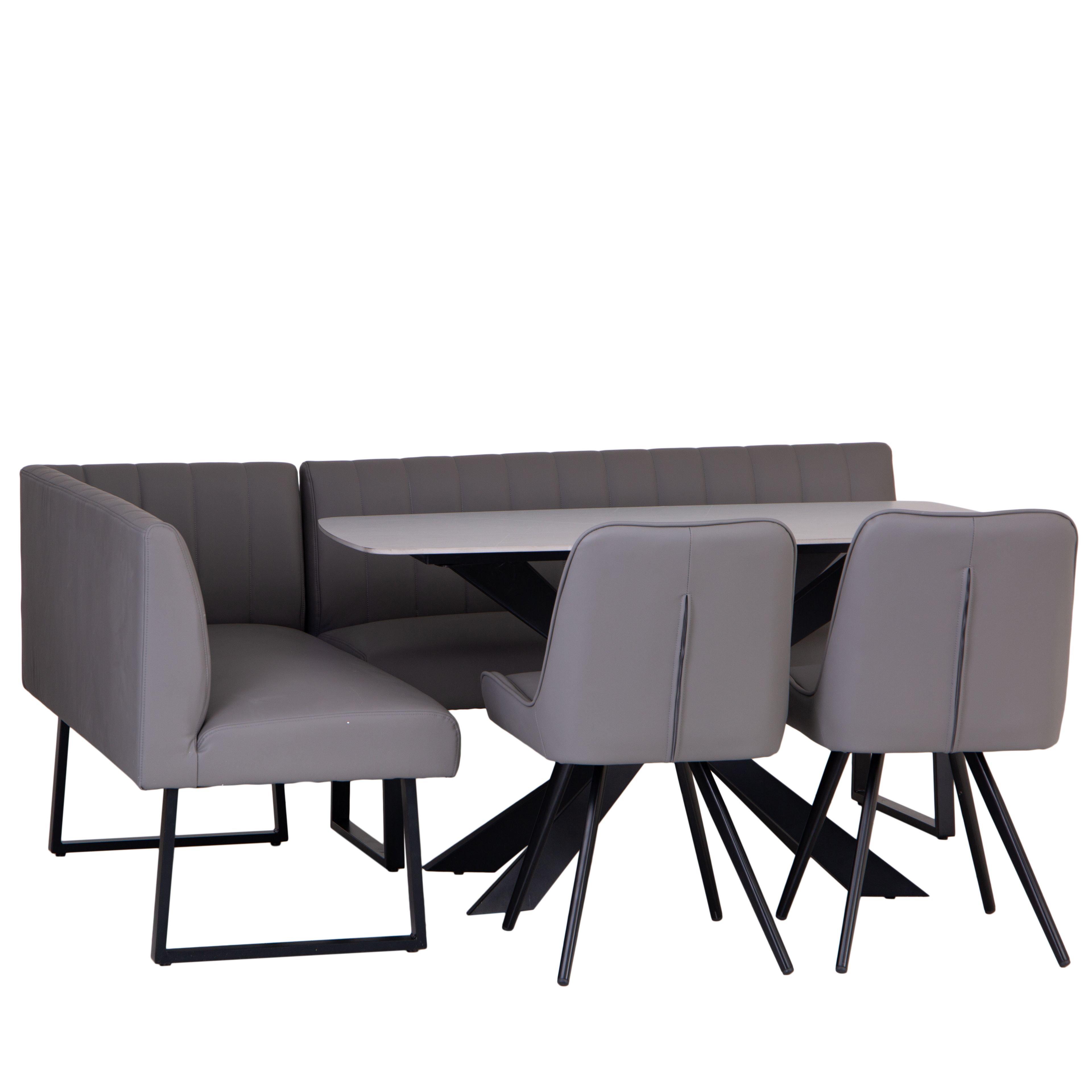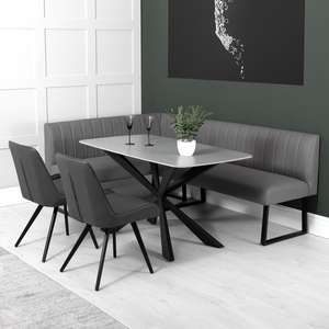 1.4m Grey Dining Table, LH Corner Bench & 2 Chairs - Grey