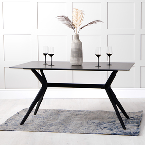 "Features • Heat & Scratch Resistant Table Top • Modern Black tapered legs • Easy Assembly • Stone table top with natural markings • The tables durability is great for all households"