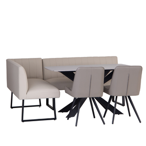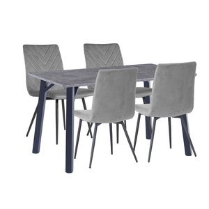 "Features • Sturdy Iron legs with Black Powder coating • Easy to follow assmbly guide • Can seat 6 chairs, 1 each end and 2 either side • Stylish and on trend Table and chair set • Amazing value without comprimising on quality"