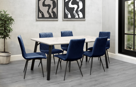 1.8m Marble Table & 6 x CH66 Blue Chairs