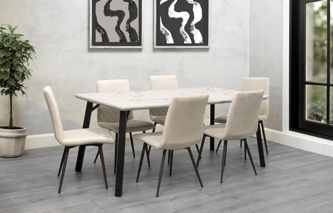 1.8m Marble Table & 6 x CH66 Taupe Chairs