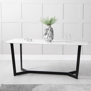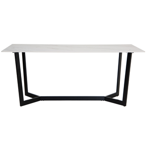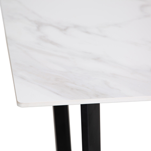 "Features • Heat & Scratch Resistant Table Top • Modern Black legs • Easy Assembly • Stone table top with natural markings • The tables durability is great for all households"