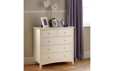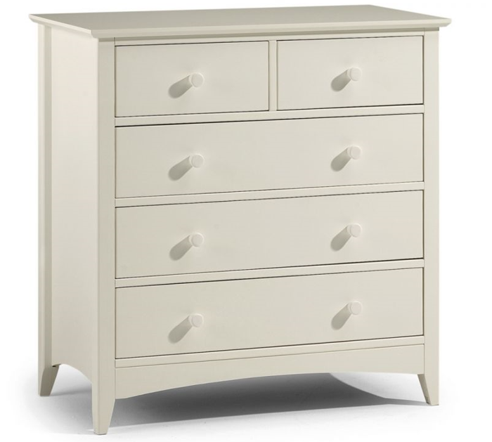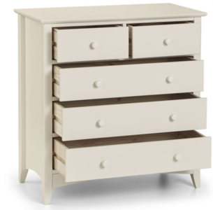Cameo is a beautiful stone white lacquered bedroom range. Its timeless shaker design is the perfect accompaniment to any interior style and is perfect for grown-up bedrooms and children''s bedrooms alike. Solid pine frames ensure a sturdy and durable construction.The Cameo 3+2 chest offers a great storage solution with 2 small drawers and 3 large drawers.