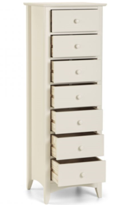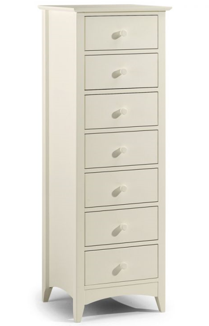 Cameo is a beautiful stone white lacquered bedroom range. Its timeless shaker design is the perfect accompaniment to any interior style and is perfect for grown-up bedrooms and children''s bedrooms alike. Solid pine frames ensure a sturdy and durable construction. The Cameo 7 drawer chest offers a great storage solution for smaller rooms given its compact footprint.