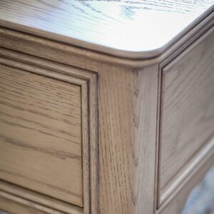 Inspired by classic French cabinetry, Toulon is a beautifully re-imagined dining collection with an understated feminine charm.The honed skills of the artisan can be seen in the effortless combination of the refined curve to the legs, the double bead detail, and the hand-crafted profiles throughout the range.Carefully selected for their alluring grain character the oak solids and veneers are hand finished with white hue laquer. Authentically aged brass handles complete the aspirational curated look.We think you will agree Toulon radiates an inherent, timeless and individual beauty that will endure for years to come.