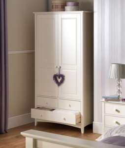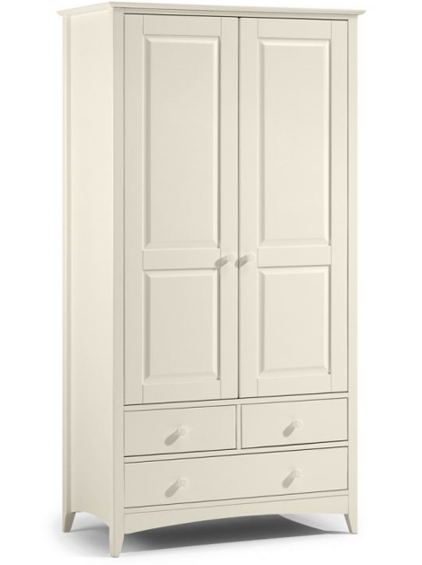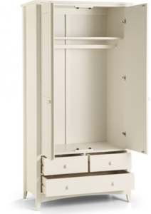 Cameo is a beautiful stone white lacquered bedroom range. Its timeless shaker design is the perfect accompaniment to any interior style and is perfect for grown-up bedrooms and children''s bedrooms alike. Solid pine frames ensure a sturdy and durable construction.The Cameo combination wardrobe has 2 doors and 3 drawers. The wardrobe also includes an internal shelf above the hanging rail.