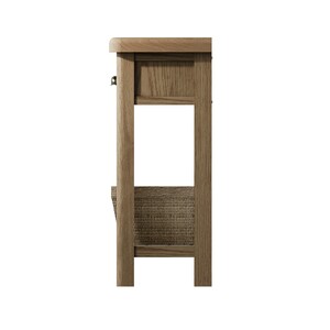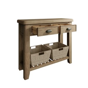Embrace the beauty of natural timber with this stunning HO Bedroom console table. The finish of the table features the beauty of natural timber in its raw state. Features 2 beautiful cane baskets sat nicely upon the bottom of the console.