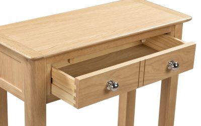 Crafted from solid oak and oak veneers, the Cotswold Console Table features 2 Drawers and a spacious shelf for storing your keys or winter warmers. This simple, yet stylish design is an ideal additional to any traditional living room with its soft edges and charming round silver knobs.