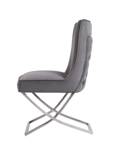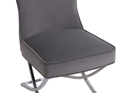 "Features • 100% Polyester Fabric • Button back detailing • Chrome x legs • Curved high back for support • Piping detail"