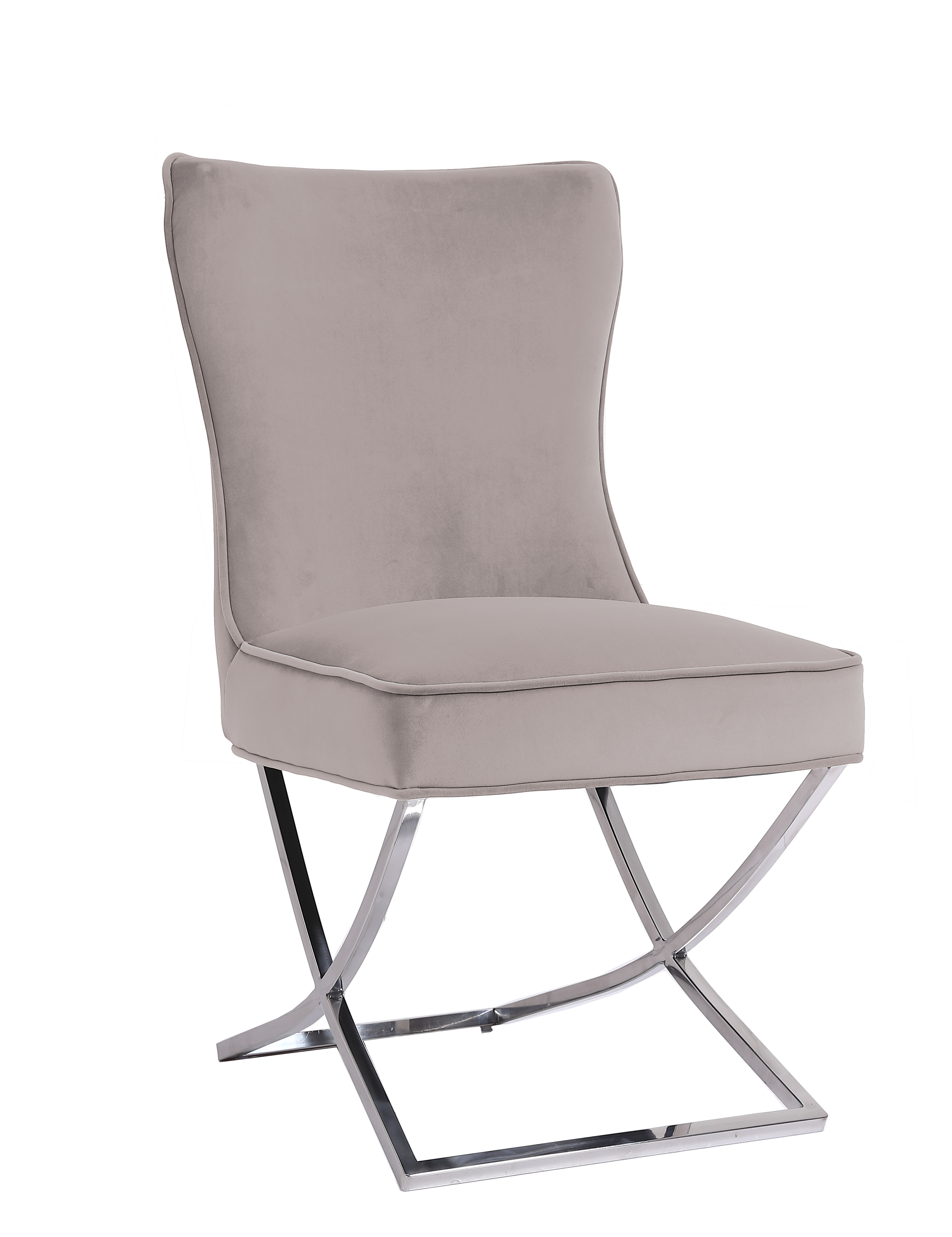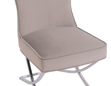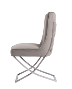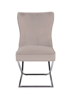 "Features • 100% Polyester Fabric • Button back detailing • Chrome x legs • Curved high back for support • Piping detail"