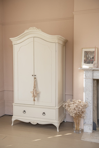 Taking its inspiration from the elegant style of 18th century French chateau furniture.Ivory is made of solid wood and veneers, with a soft off-white painted finish with a subtle patina and distressed effect to the detailed hand carvings. A comprehensive range of twenty four pieces, there is bound to be a combination for every bedroom. 2020 sees the introduction of a new bed option with upholstered head and footboards in a luxury cream fabric.