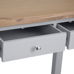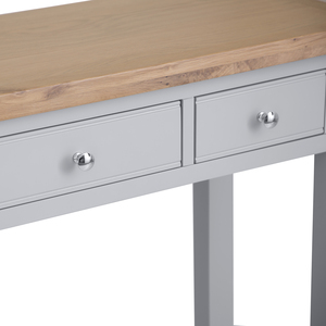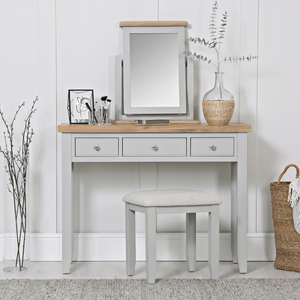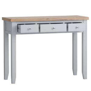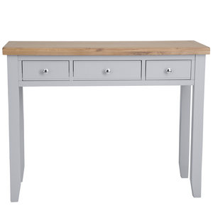 "Features • 3 Drawers for stoarge • Chrome knobs • Stylish rounded wooden top • Beautiful painted finish • Available in Grey or White finish. "