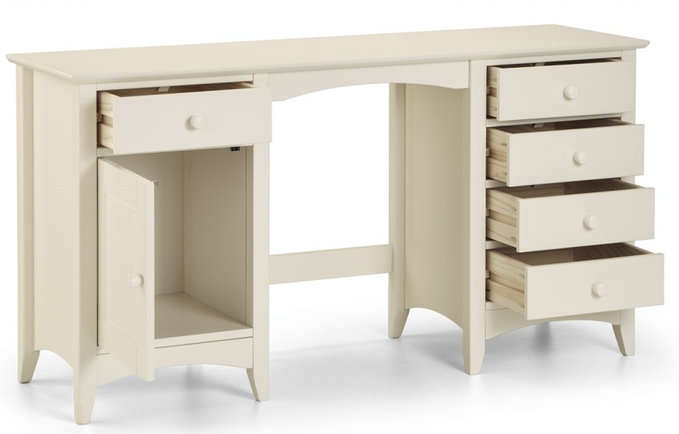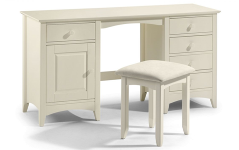 Cameo is a beautiful stone white lacquered bedroom range. Its timeless shaker design is the perfect accompaniment to any interior style and is perfect for grown-up bedrooms and children''s bedrooms alike. Solid pine frames ensure a sturdy and durable construction. The Cameo dressing table is an elegant piece with great storage, including five storage drawers and a cupboard. Accompanied by the Cameo stool (sold separately)
