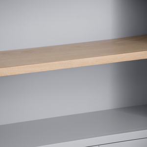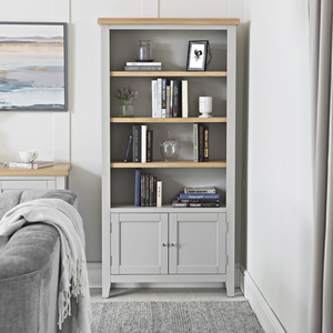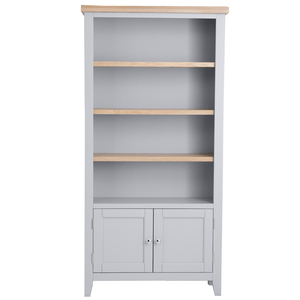 "Features • 3 Adjustable height shelves • Chrome handles on double cupboard door • spacious and open area''s for displaying items • Beautiful painted finish • Available in Grey or White finish. "