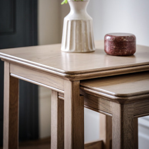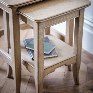Inspired by classic French cabinetry, Toulon is a beautifully re-imagined dining collection with an understated feminine charm.The honed skills of the artisan can be seen in the effortless combination of the refined curve to the legs, the double bead detail, and the hand-crafted profiles throughout the range.Carefully selected for their alluring grain character the oak solids and veneers are hand finished with white hue laquer. Authentically aged brass handles complete the aspirational curated look.We think you will agree Toulon radiates an inherent, timeless and individual beauty that will endure for years to come.