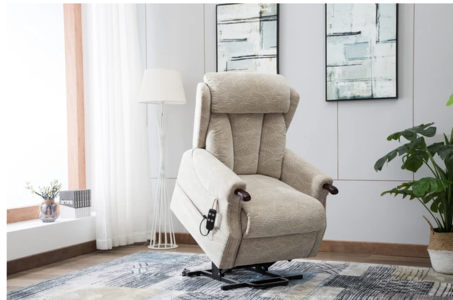 Get to your feet smoothly, safely and easily with the Denmark dual motor riser recliner. With a touch of a button, this motorised rise and recline chair takes you from fully reclined all the way to standing.The easy to use remote control sits in a handy side pocket on the chair when not in use. The high back offers plenty of support whilst the soft touch fabric upholstery adds the greatest level of comfort.