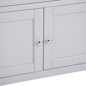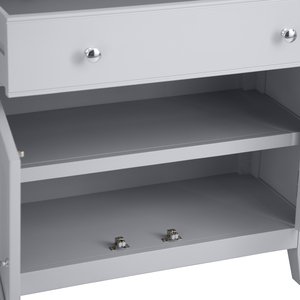 "Features • Dovetailed drawer on wooden guides • Double door cupboard with Chrome Handles • 1 internal fixed shelf • Look out for more from this range • Available in Grey or White finish. "