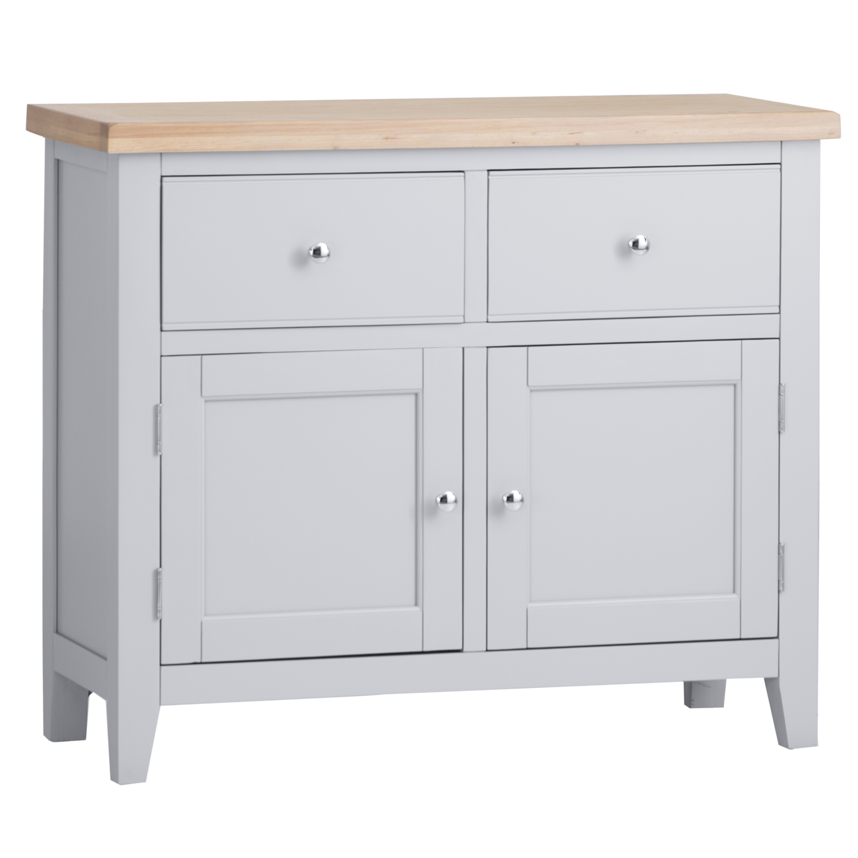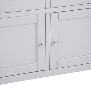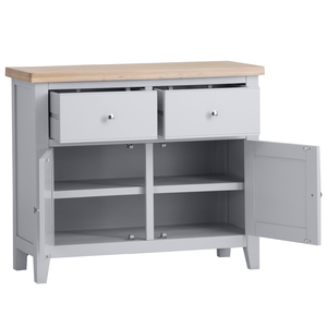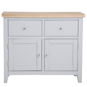 "Features • 2 Dovetailed drawers on wooden guides • Chrome Handles • 2 door cupboard with fixed internal shelf • Look out for more from this range • Available in Grey or White finish. "