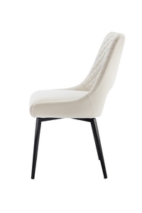 "Features • 100% Polyester Fabric • Diamond stitch detailing • Curved high back for support • Cushioned seat pad • Black Tapered legs"