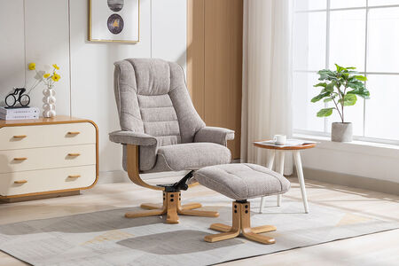 The Sardinia is a versatile and stylish addition to any home. Its fresh look and range of fabrics & leathers make it a perfect fit for any décor.The Sardinia also boasts an easy recline mechanism and 360° swivel, providing ultimate comfort from head to toe, and with its mid oak star base, this chair adds a touch of sophistication to any room.