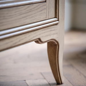 Inspired by classic French cabinetry, Toulon is a beautifully re-imagined dining collection with an understated feminine charm.The honed skills of the artisan can be seen in the effortless combination of the refined curve to the legs, the double bead detail, and the hand-crafted profiles throughout the range.Carefully selected for their alluring grain character the oak solids and veneers are hand finished with white hue laquer. Authentically aged brass handles complete the aspirational curated look.We think you will agree Toulon radiates an inherent, timeless and individual beauty that will endure for years to come.